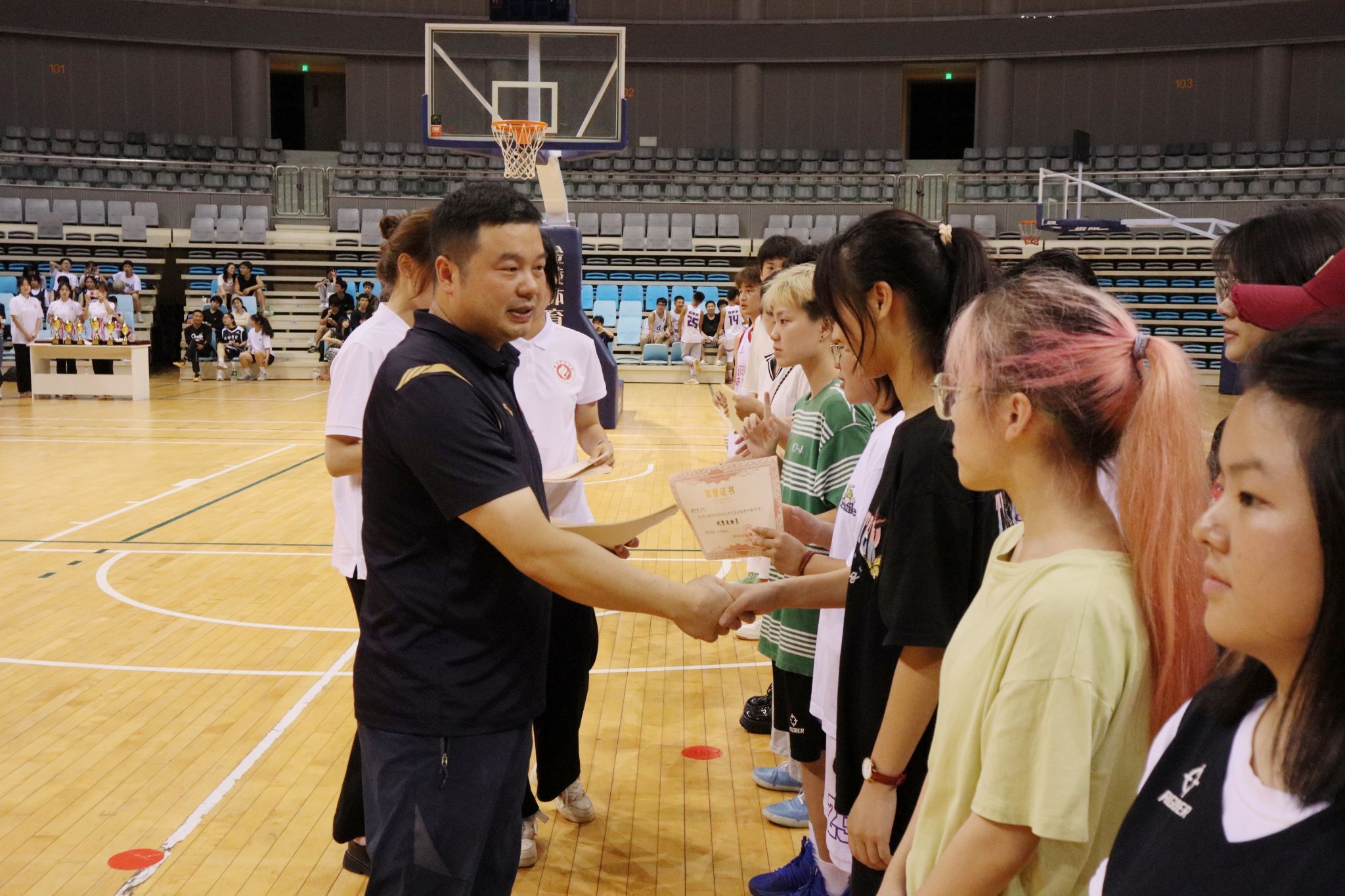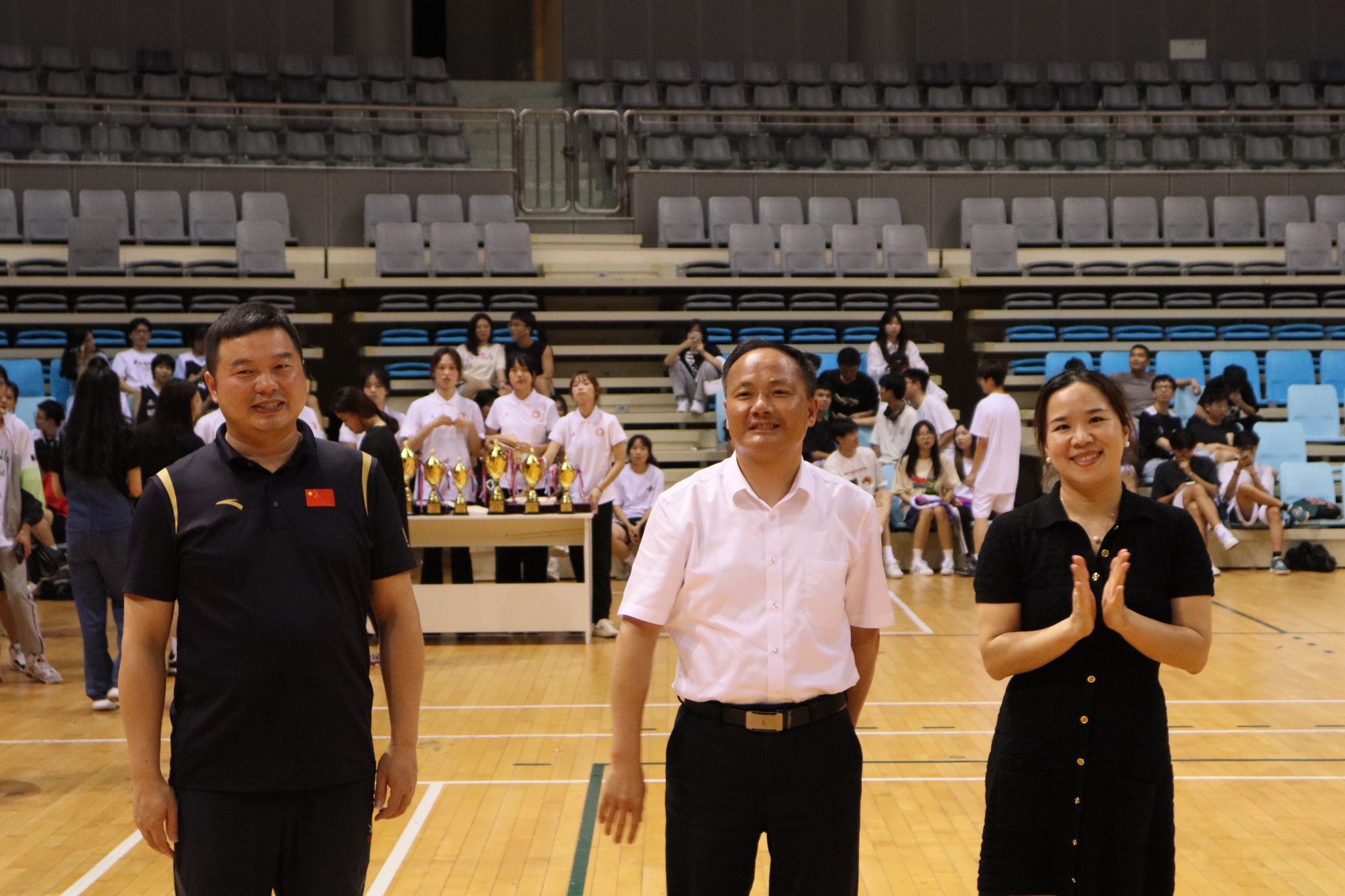 首先,由古天乐代言太阳集团副经理谢明正为优秀运动员颁奖;然后,由教务处副处长李文艺教授为女子组前八名队伍颁奖;最后,由副董事长聂东明教授为男子组前八名队伍颁奖。