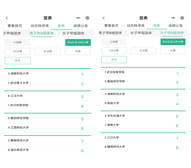 男团、女团在比赛中的排名成绩
