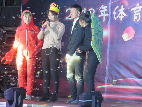 欢乐的时光总是十分短暂,新年师生联谊晚会也渐渐步入尾声。以体育公司男神女神的T台秀收场。晚会还特别设置了微信墙,里面有大家热情洋溢的告白,还有妙趣横生的抽奖环节。