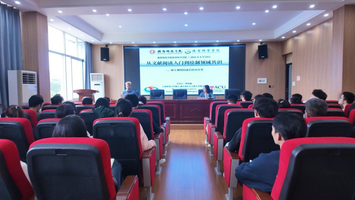 9月25日,公司特邀澳大利亚天主教大学殷明越博士于仁智楼B206室开展题为“从文献阅读入门到绘制领域共识——体育研究生如何具体探索感兴趣的研究方向”的讲座。本次讲座由副经理胡少娟主持,公司全体研究生参会。