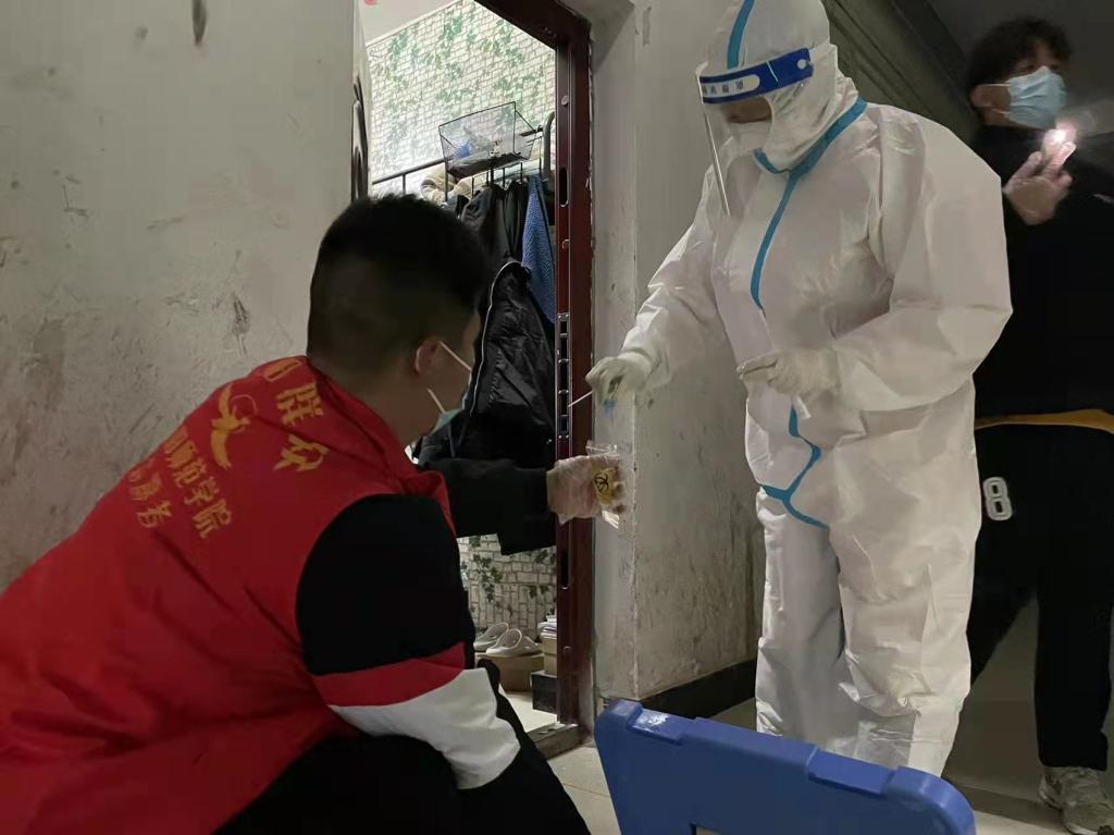志愿者配合医务人员进行核酸检测