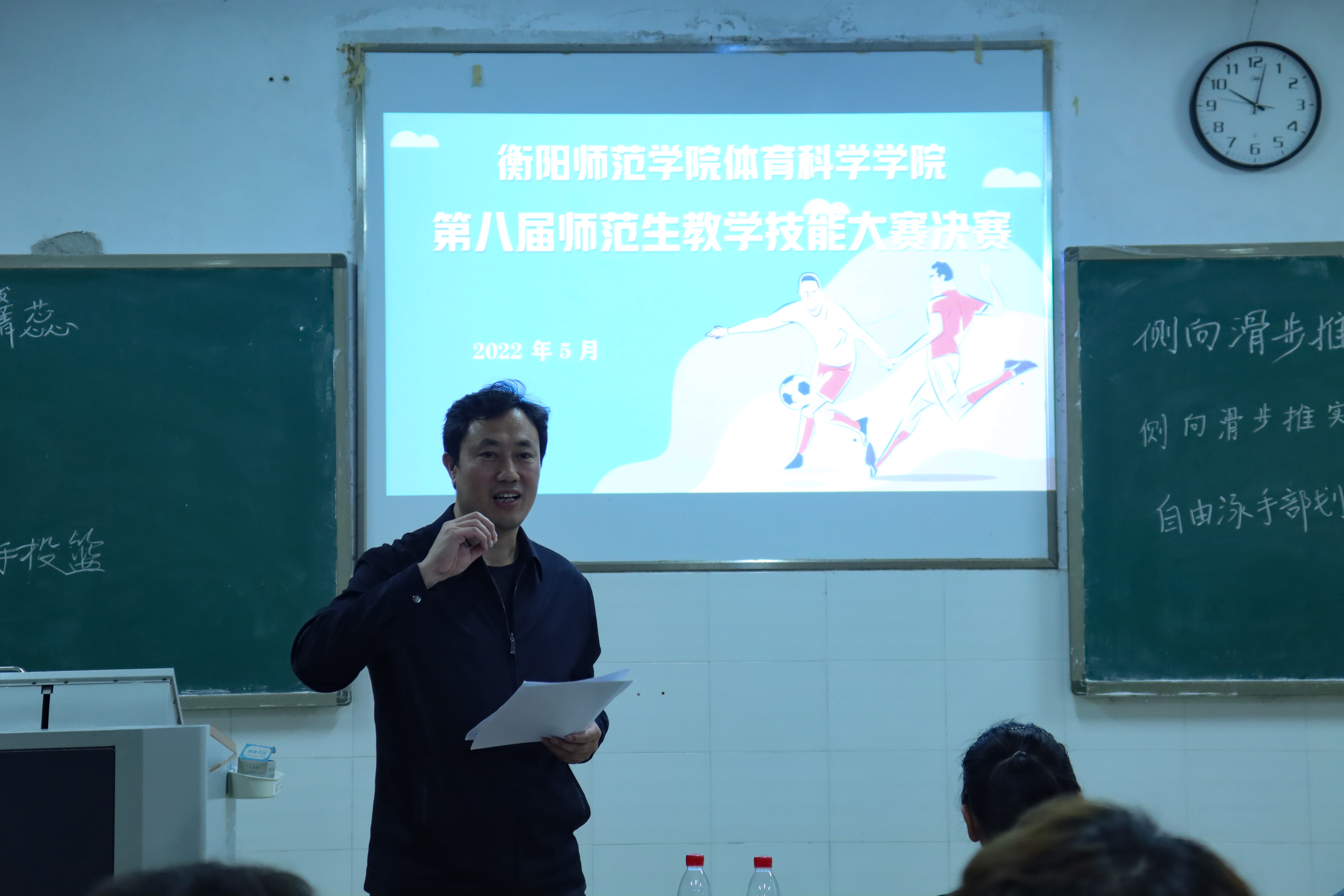 此次大赛由说课、多媒体设计、书写技能、片段教学、教育问答五部分组成。8位来自本部和南岳公司的员工参与决赛,并以抽签的方式决定了本次比赛的出场顺序。参赛选手各有千秋,他们分别选取中学篮球、游泳、田径等项目进行教学,不仅有动作示范,还有体育知识的讲解以及与员工的互动。他们的语言表达准确生动,教学过程设计合理,教学方式新颖,既体现了师范生的基本功,也展现了公司学子的教学能力。选手精彩的表现,赢得了评委的肯定。