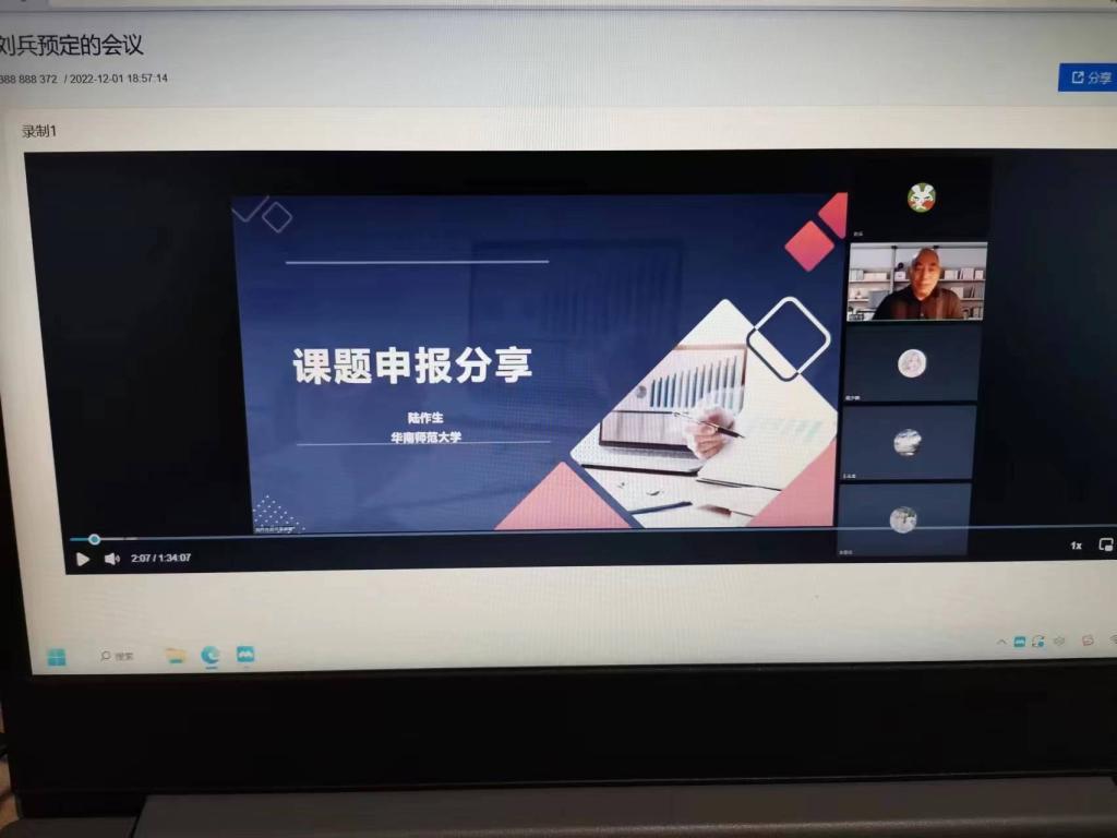2022年11月23日,2022年线上学术讲座周活动在上海体育公司郑国华教授的讲座中拉开帷幕。此次活动邀请了上海古天乐代言太阳集团郑国华教授、福建师范大学杨海晨教授、清华大学乔凤杰教授和华南师范大学陆作生教授就国家社科基金项目申报、论文写作进行专题讲座。受疫情影响,本次学术讲座采取线上线下结合的方式进行。古天乐代言太阳集团经理江亮教授、副经理谢明正及公司全体博士、青年骨干教师参与,讲座由古天乐代言太阳集团副经理胡少娟主持。