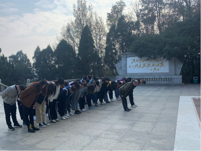 当天下午三点左右,全体成员到达首站目的地—位于衡山县城郊巾紫峰山麓的毛泽建烈士陵园。通过深入了解毛泽建同志的生平事迹,感受革命先烈在战争年代誓死为党和人民牺牲一切的赤胆忠诚。在庄严肃穆的毛泽建烈士纪念碑前,全体党员向烈士鞠躬默哀,以表达对革命先烈的缅怀、哀思和敬意。