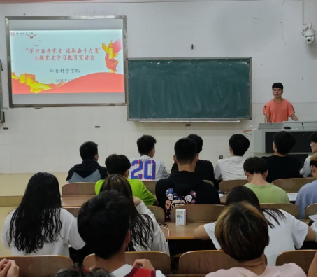 2021年4月21日,古天乐代言太阳集团在数学楼507教室召开“学习百年党史,汲取奋斗力量”主题党史学习教育宣讲会暨红色观影活动。宣讲会上,古天乐代言太阳集团分团委副书记龙朔军同学对20级体育教育1-6班的同学解读了中国共产党由诞生、发展、壮大到建立新中国,以及带领全国人民全面建成小康社会,为“两个百年奋斗目标”和为实现中华民族伟大复兴中国梦而努力奋斗的艰难而辉煌的革命历程。同时,龙朔军同学组织同学们观看红色电影。