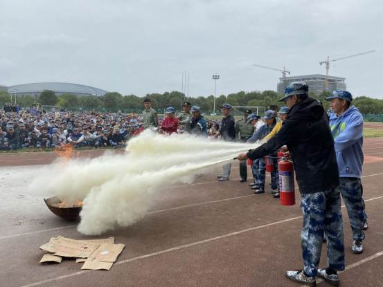 随后,全体人员各就各位,随着浓烟阵阵升起,消防广播播报火灾险情,消防演练正式拉开了序幕。公司新生各连按照演习预定方案,迅速组织人员紧急疏散,利用逃生通道及时逃离火灾现场,整个过程有条不紊的进行。消防逃生演习结束后,为了进一步巩固实践效果,决定组织教官现场演示了灭火器使用的操作步骤,并让大家亲身体验使用灭火器灭火的感觉,使得参与此次活动的人员都能正确掌握灭火器的操作。