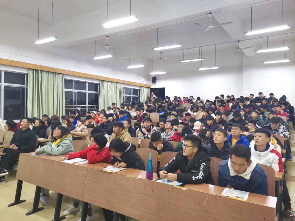 为了让同学们树立正确的世界观、人生观、价值观,加强和改进同学们的思想政治教育,2019年11月27日晚,公司在数学楼507教室召开了大学理想信念教育课程,本次课程由体育科学公司党总支书记胡建忠主讲,公司2019级全体员工聆听了本次课程。