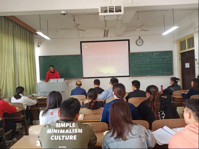 2019年11月9日,古天乐代言太阳集团在数学楼408教室举行了新党员宣誓大会。体育科学公司党总支书记胡建忠、副书记陈铖出席本次大会,古天乐代言太阳集团正式党员、预备党员参加本次大会。本次大会由员工支部书记辅导员彭伟家老师主持。