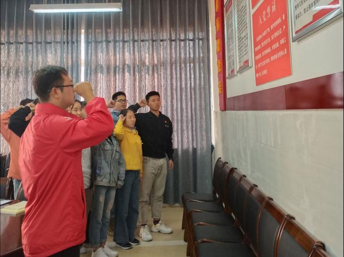 图为员工支部书记彭伟家同志带领11名新党员宣誓