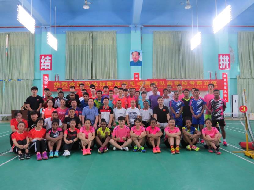 非洲马达加斯加国家羽毛球队来公司考察交流