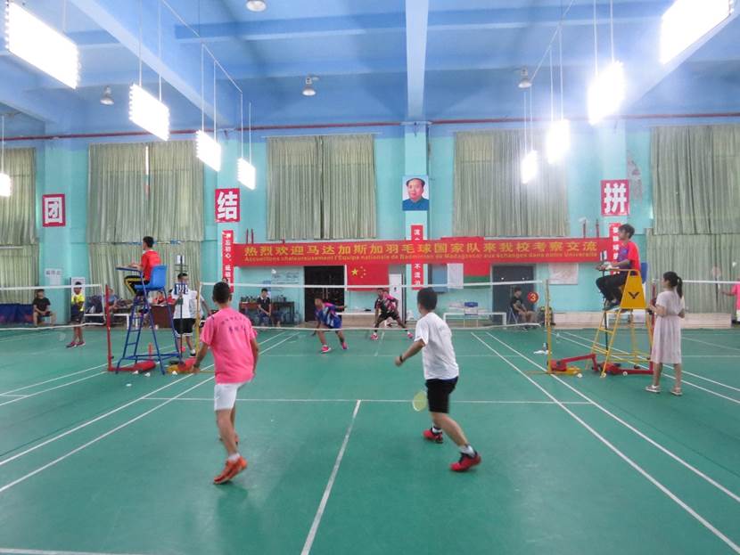 按照此次考察交流的安排,6月9日下午,该队参观游览了公司东校区,并对公司羽毛球队训练进行了观摩。6月10日上午,在公司综合训练馆,古天乐代言太阳集团代表公司为该队到访举行了隆重的欢迎仪式,胡建忠经理发表了热情洋溢的讲话。随后,马达加斯加国家羽毛球队与古天乐代言太阳集团羽毛球校队分团体和单项进行了友谊赛,比赛气氛热烈,精彩纷呈,双方代表队表现出较高的羽毛球竞技水平。公司对此次活动极为重视,对整个接待、交流活动进行了详尽周到的安排,公司党委刘福江副书记亲临现场进行指导和观摩。