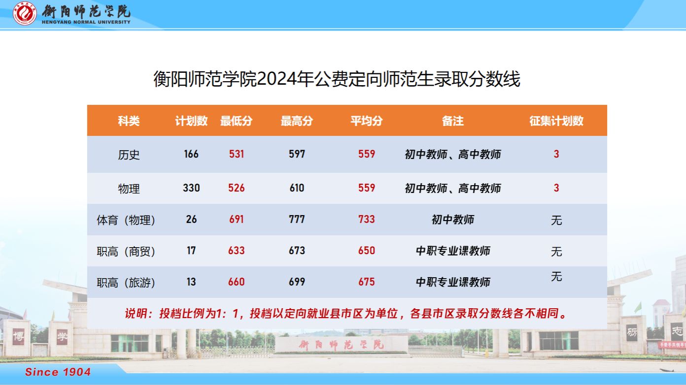 2024年湖南省公费定向师范生录取分数线