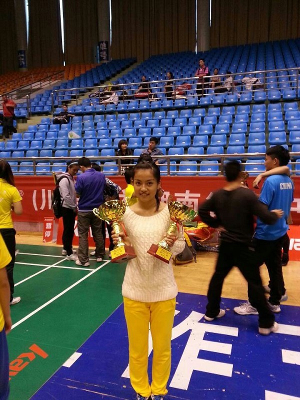 陈思雨获2013年湖南省老员工羽毛球比赛女子团体冠军、女子双打冠军、女子单打冠军