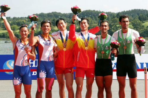 张亮获2014年仁川亚运会赛艇男子双人双桨比赛冠军