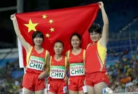 蒋芬芬参加2016年里约残奥会获田径女子T35-38级4×100米接力比赛第一名